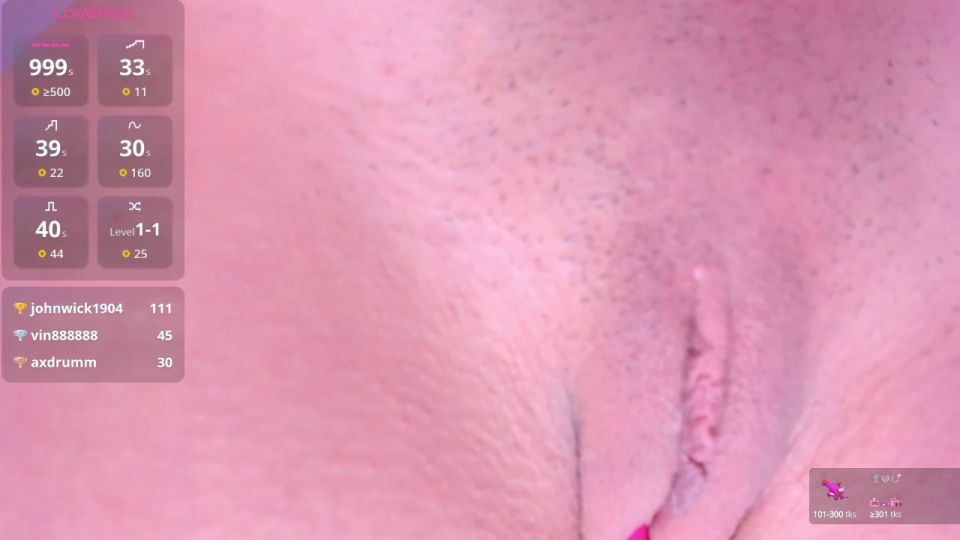 my show: skinny, squirt, anal, saliva, cosplay, ride dildo, blowjob, deep throar, lovense Goal: ride dildo