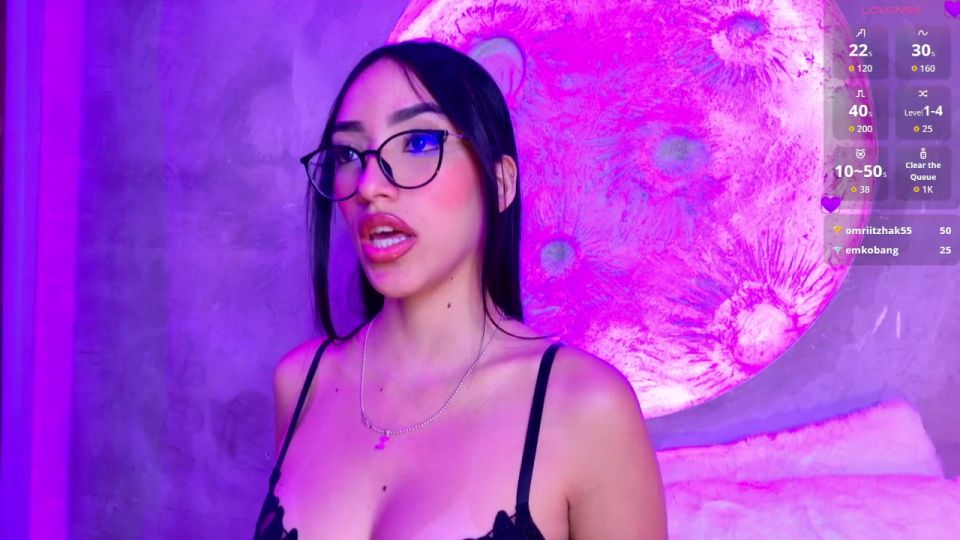 GOAL: Take top off + oil Sexy schoolgirl with glasses