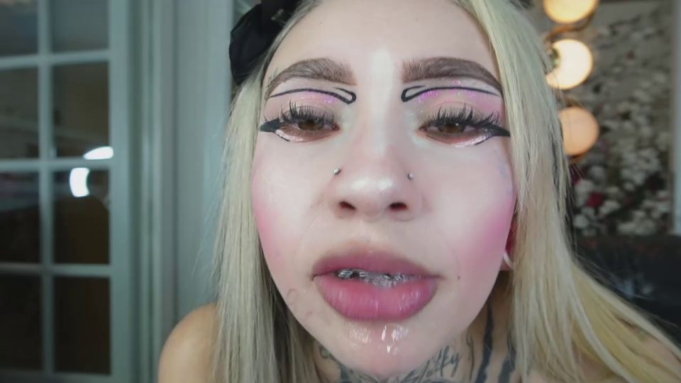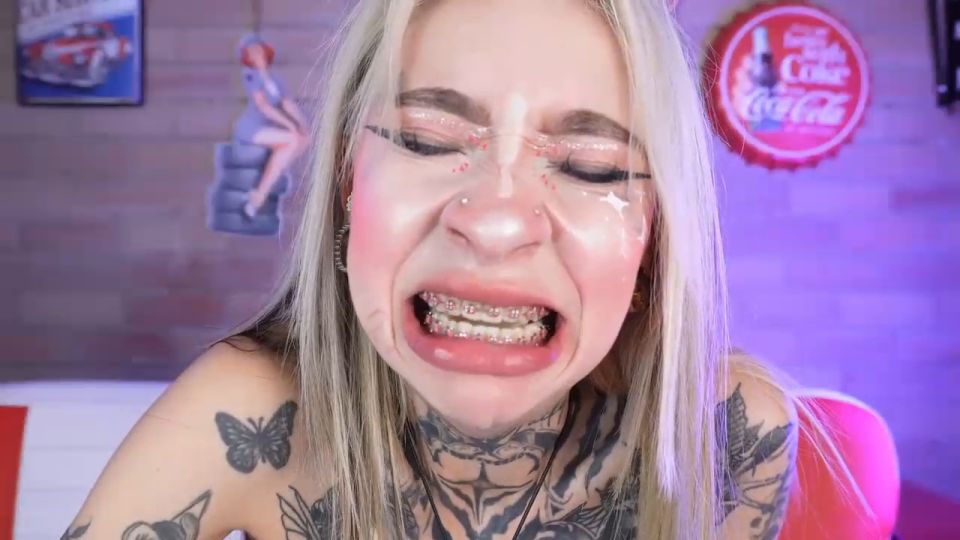 Skinny goth girl, I literally swallow everything/I like messy games - Goal is : Squirttin spurts as champagne #atm #deepthroat #skinny #braces #saliva