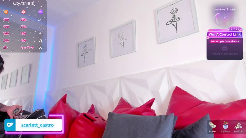 send 50 tips to ride 1 min squirt Goal - slow striptease